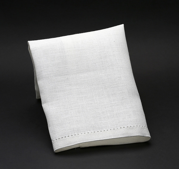 This fine quality Pure Linen Bread Plate Napkin with embroidered Latin Cross is an attractive Communion accessory to use with or without the element cover, and may also be used to separate multiple bread trays. 13 1/2" square, and with 1/2" hem and mitered corners.