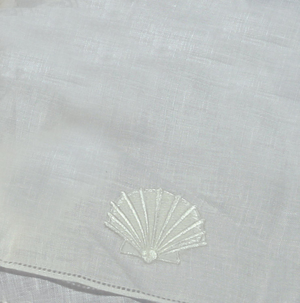 Made of Irish Linen with embroidered shell in white thread, this keepsake Baptismal napkin reveals a look of simple elegance and creates a special memento for your baptism occasion. 10-1/2” x 10-1/2” with 1/8 inch hemstitched hem.