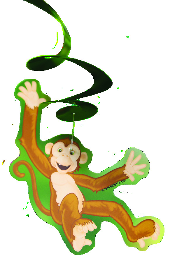 Add delight and whimsy to your vertical space with these rainforest monkey spirals. Easy to hang. 40" long. 5 per package.