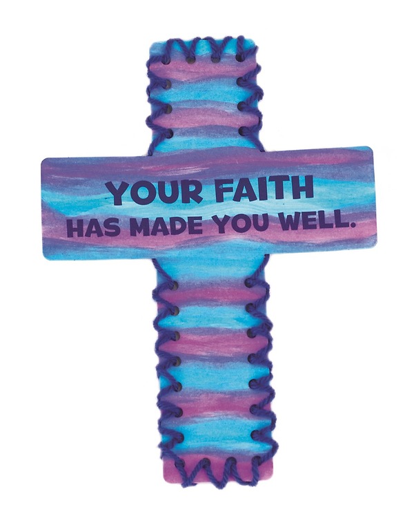 "This Jesus Heals Lacing Cross reminds kids that Jesus is full of healing. Cardstock cross can be decorated and features punch holes around the edge that kids can weave yarn through. Pack of 12.