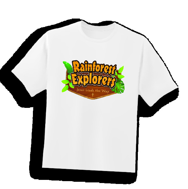 Reduce costs by purchasing T-shirt iron-ons rather than predesigned shirts. Iron-ons feature the Rainforest Explorers logo. The shirts you create are wonderful volunteer appreciation gifts, can be worn as witness wear now and beyond VBS, and help kids recognize VBS staff. Sold in packs of 10.