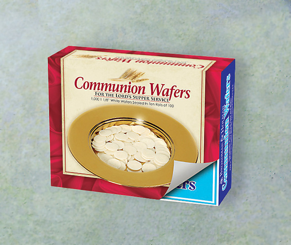 For churches who prefer white unlevened bread – made of wheat flour, shortening, salt and water – for use in the Communion service, these Plain Round Communion Wafers measure 1 1/8" across (slightly larger than a quarter) and come packaged in cellophane tubes. A box contains enough pieces to serve 1000.
