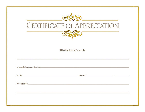 Package of 6 flat certificates (8 1/2" x 11") for appreciation printed on very white, textured paper and embellished with gold metallic foil accents. Space for name, reason for acknowledgement, date and presenter's name. A free online template for this certificate is available at www.bhpublishinggroup.com.