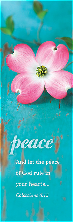 Broadman bookmarks feature beautiful 4-color images and copy designed for different uses. This 2" x 6 1/2" bookmark is designed for use as an inspirational marker. They are sold in shrink-wrapped packages of 25 identical pieces. This marker features Colossians 3:15 (KJV) Scripture on the front.