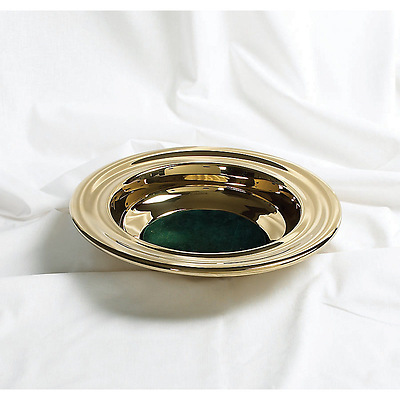 RemembranceWare® Traditional, brass-colored stainless steel Offering Plate is made of the same high-end, food grade stainless steel as are all RemembranceWare® pieces. It achieves it’s unique brass hue through a multi-step finishing process. This Offering Plate features a dark green felt pad on the inside bottom to soften noise during offering collection. It has a curved rim for easier passing. The Offering Plate is standard size (2 2/4" high and has a diameter of 12"). The felt pad has a 5 1/2" diameter. Edges are double rounded to ensure a smooth and safe feel to this piece. RemembranceWare® pieces are easily cleaned with mild soap and water and a soft cloth. This piece carries a 5-Year Guarantee and is beautifully boxed.