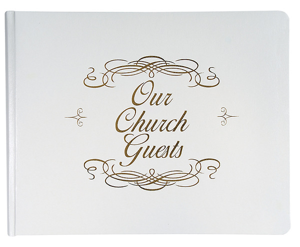 Homes, churches, weddings and funerals all provide occasion for us to welcome and receive our honored guests. Broadman offers you a white guest book with a bonded leather padded cover, rounded corners, gilded gold page edges, and ribbon marker. This 58-page book lays flat for the easy signing of over 700 names and addresses. All pages have Psalm 122:1 (I was glad when they said unto me, Let us go into the house of the Lord. KJV) on them and are acid free. This 10 5/8” x 8 1/2” book is white with gold lettering on the cover and comes in a gift box.