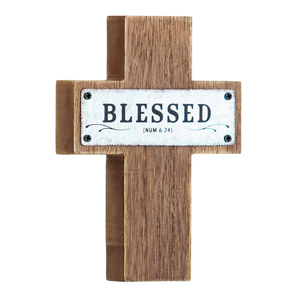 Blessed MDF Wood and Metal Cross 5.5"