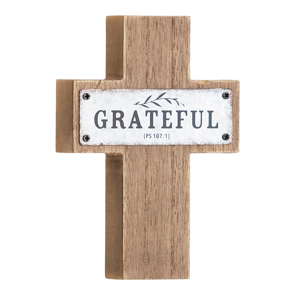 Grateful MDF Wood and Metal Cross 5.5"