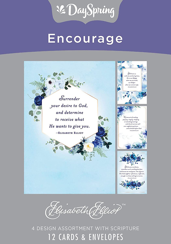 This boxed set of assorted inspirational encouragement cards features an inspiring quote from the timeless teachings of Elisabeth Elliot. A perfect dose of faith, love and peace to inspire your friends and family on any occasion.