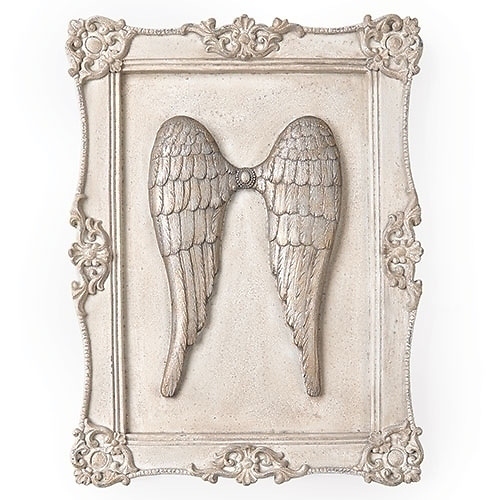 This decorative framed wall plaque features a pair of beautiful angel wings, measures 16"H