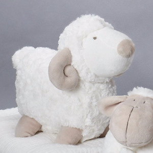 This plush toy sheep features curled horns, pointed nose and huffs in tan with a body fluffy white. Great for any child to snuggle up to, but safe for baby too with no loose parts. Measures 7"H.
