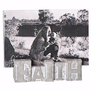 FAITH CEMENT FRAME 6.75"H - holds photos 4X6