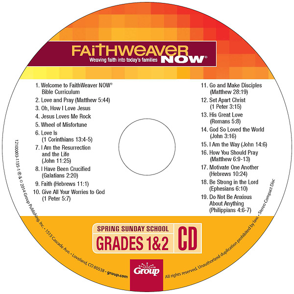 These CDs help you lead memorable moments in your FaithWeaver NOW® lesson. They include songs and sound effects. One CD is included in each FaithWeaver NOW Teacher Pack—purchase extras to simplify team teaching! Having extras comes in handy when planning for additional programming times. They also make great gifts for kids at the end of the quarter to remind them of what they learned.