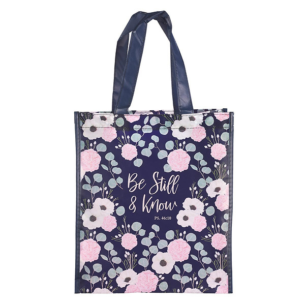 Encourage your sister, grandmother, wife, or aunt to recall that the Lord calls them to pause and remember who He is. She may get caught up in the busyness of life and not see Him in her daily activities but He is present. Being still and resting in Him is the powerful message from Psalm 46:10 that you can share when you give the Be Still Tote Bag. She can take the Christian tote bag with her on all her journeys, whether shes driving across the country, packing essentials to babysit her grandson, or looking for a bag to hold her Bible study materials.