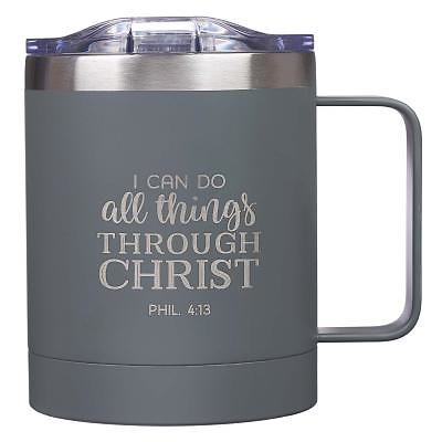 Mug Stainless Steel Camp Gray All Things - Phil 4:13.