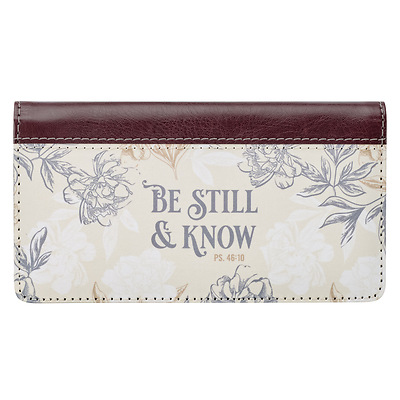 Put your worries at rest when you look to the words of reassurance printed on the Be Still & Know Neutral Florals Faux Leather Checkbook Cover.