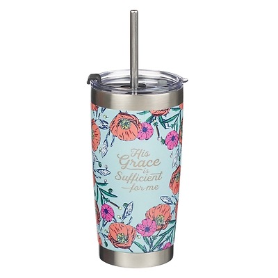 The His Grace Stainless Steel Travel Mug is a reminder that God’s grace is the best gift we can ever receive. The joyful design on this stainless steel travel mug will lift your spirit, and the comforting message will calm your soul. The His Grace Stainless Steel Travel Mug is decorated with a spirited teal background embellished with detailed drawings of magenta and orange peonies, along with dainty stems and leaves. The sentiment is an adaptation of 2 Corinthians 12:9 and is laser engraved in an elegant cursive script. His grace is sufficient for me