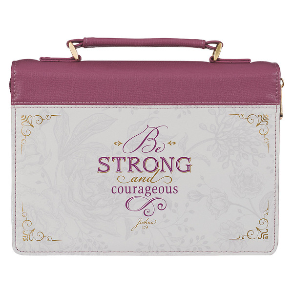 Let the quality construction of the Strong and Courageous Topas Pink Faux Leather Fashion Bible Cover protect your Bible as its message inspire you to act—with God by your side you can climb any mountain or face any battle.