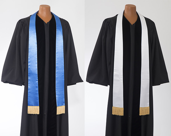 The quality, versatility, and value of this long-wearing satin reversible Blue/White Stole make one of our most popular stoles. Gold-fringed edge; 92" long, 4 1/2" wide; tapers to 1 3/4" at the neck.