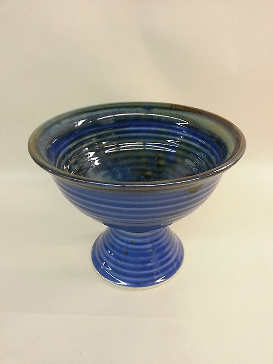 Baptismal Bowl on Pedestal Earthenware Blue