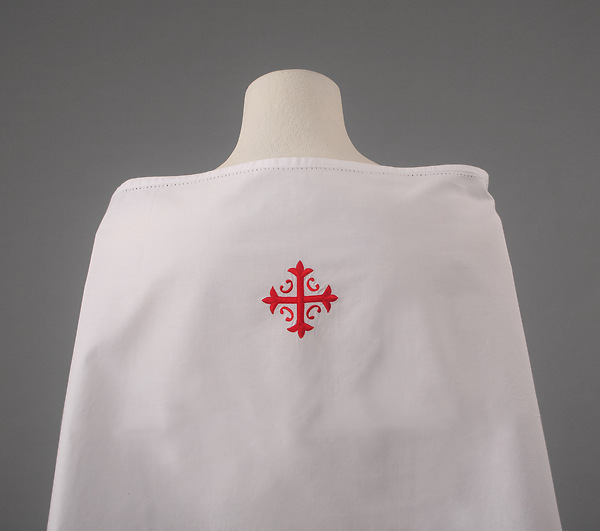 This Amice is made of 100% cambric linen that is finely woven. Features an embroidered red Cross and Vine. Machine washable. Sold individually. Dimensions: 20" x 40".