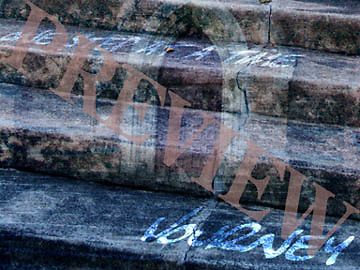 This is a download still for use in worship as a background slide is a photograph of stairs with the words One Step At A Time Journey, available by download purchase only.