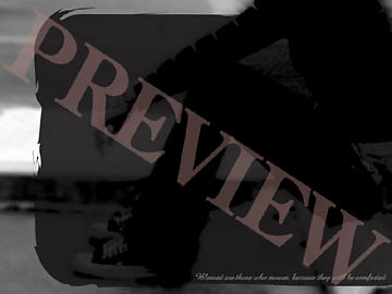 This is a download still for use in worship as a background slide showing a black and gray photo of a person sitting in sneakers with "Blessed are those who mourn, because they will be comforted," download purchase item.