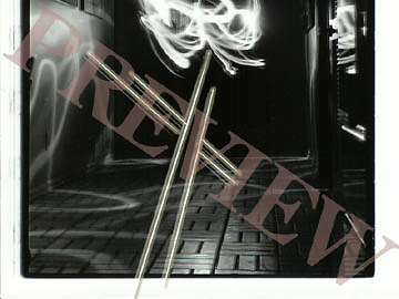 This is a download still for use in worship as a background slide showing a black and white image of a neon cross and other various shaped lights, download purchase item.