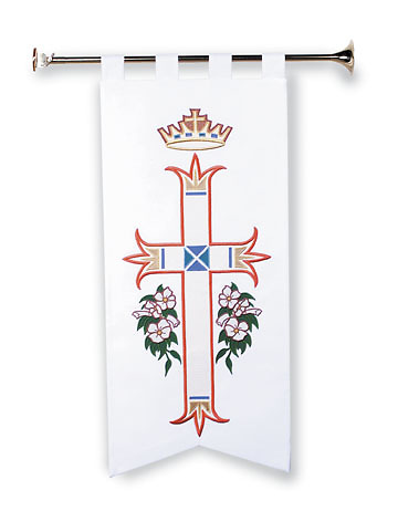Help your congregation experience this most sacred time of the year with this Banner made of heavy Cathedral fabric, a textured linen-look polyester woven in rich vibrant colors. Easter symbols of Crown over Cross with Lilies are created by combining embroidery and sewn appliqués. Designed to fit most church settings. Approximately 24" W and 48" H, including top tabs.