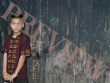 This is a download still for use in worship as a background slide showing a dark background with a child standing to the left with the words, "Change A Life" on the right side of the child's figure, download purchase item.