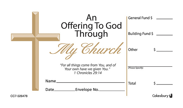 Encourage the importance of tithing with offering envelopes. Bulk envelopes are not numbered or dated. They are primarily intended for placing in pews/chairs or for mailing campaigns. Space is provided for date/name/amount. Dimensions: 2½” x 4¼”. Package of 500.