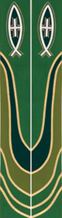 This olive stole is part of the Ascension Series of paraments and stoles--all of which are perfect for celebrating the seasons of the Christian year. The stole is made of cathedral fabric; the liturgical color for use during Ordinary Time. It features a fish with cross and accent fabric of elm, hunger, and olive. The stole is 110” x 5”.