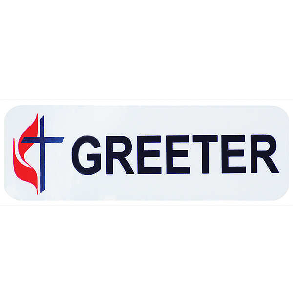 The UM Greeter Badge is the perfect solution for pastors and church leaders looking for a professional, attractive way to make sure their Greeters look the part! Designed with a white background, the title “GREETER” in bold black font and the Cross & Flame emblem on the left side, this badge will be appreciated by all. Plus, its magnetic back helps protect delicate fabrics from damage—no more pinholes or sagging lapels! The badge measures 3” by 1”. Get your Greeters ready to meet your congregation with style and confidence wearing the UM Greeter Badge, order today!
