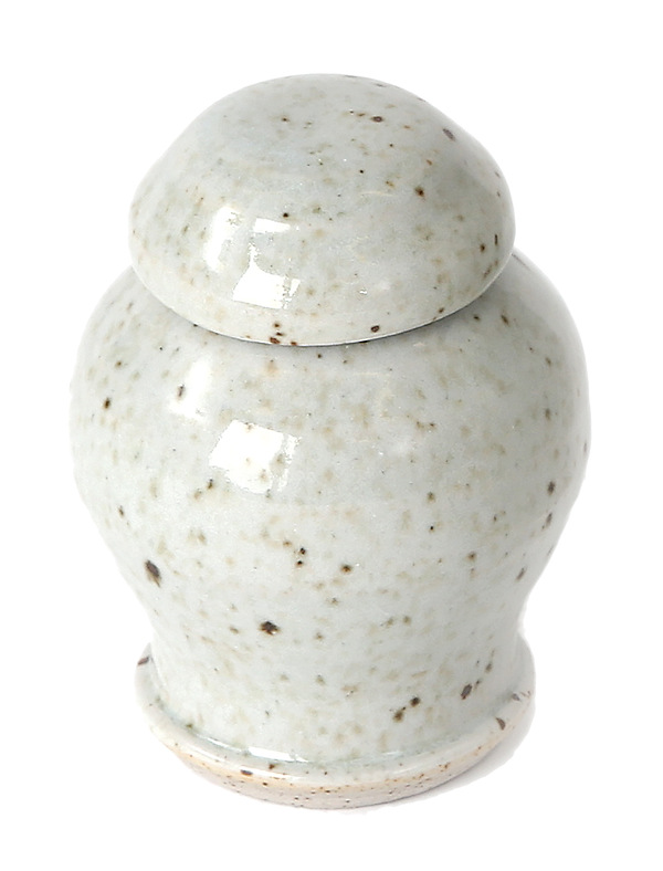 Handmade in USA stoneware keepsake urn. Natural white with brown specs. Due to the hand-made nature of these urns product received may look slightly different.