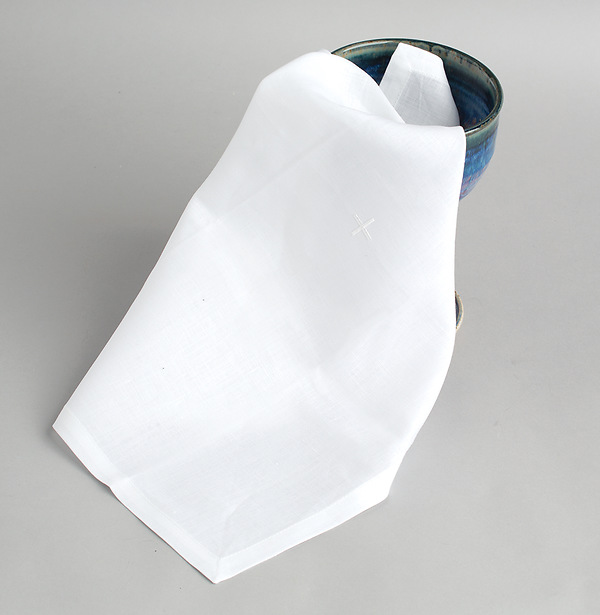 Altar linens from Gaspard feature mitered corners and an embroidered cross on 100% linen fabric. The large Purificator measures 13.5" X 20".