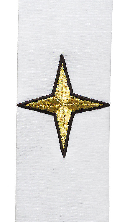 This beautiful bookmark features a 100% emboridered star on 100% polyester cathedral fabric.