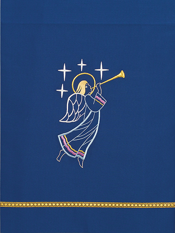 This beautiful pulpit scarf features a beautiful embroidered angel with trumpet on cathedral fabric.