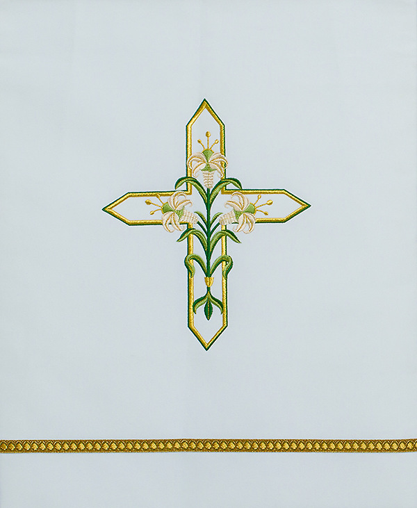 This beautiful pulpit scarf features a beautiful embroidery of Easter lilies with a cross.