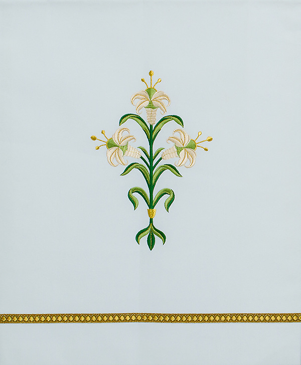 This beautiful lectern scarf features a beautiful embroidered Easter lilies.