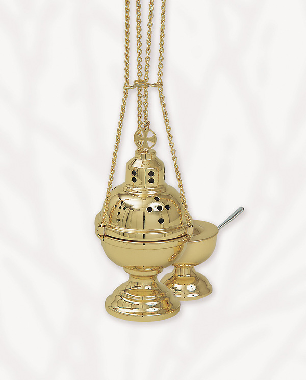 This is a 4 Chain Censer with Boat, 24k Gold Plated, 8 5/8" H., 4 1/2" Bowl. Overall Height 36".