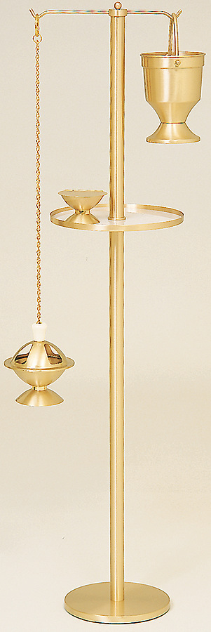 Censer Stand, Bronze Satin. 11" tray. Ideal for funeral liturgy. 50" high, 10 1/2" base.