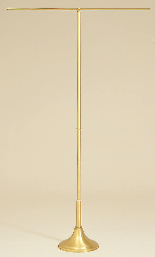 Processional Banner Stand, Brass Satin Finish. Furnished with a 60" rigid shaft. 10 1/2" base, 36" cross bar.