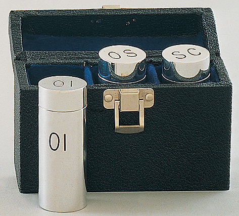 This Sacristy Oil Set comes with three aluminum containers with threaded covers. They are labeled OI, OS, SC, with a 1 1/2 oz capacity. The case measures 3 3/4"H., X 5 1/2" W.