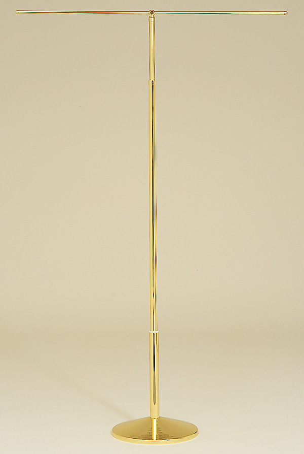 A Processional Banner Stand with a telescoping shaft that extends 51" to 90" with a 36" cross arm and a 12" base. All in a Highly polished Bright Brass. Made in the USA.