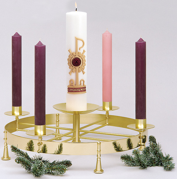 Advent wreath – Solid brass, two-tone finish. Inside ring dia. 21”, 7 1/4” H. In center, outside dia. 25”, with 1 1/2" sockets.