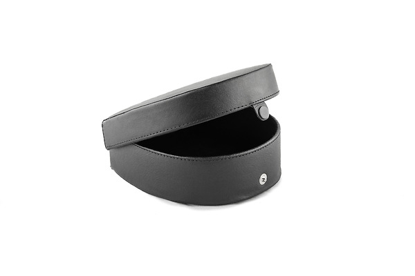 Real leather Collar/Button case made by MDS. This case is designed to take your clergy collars and keep them in shape when not in use. Button storage area is also in the case. A must for looking after your neckband collars. Black Leather.