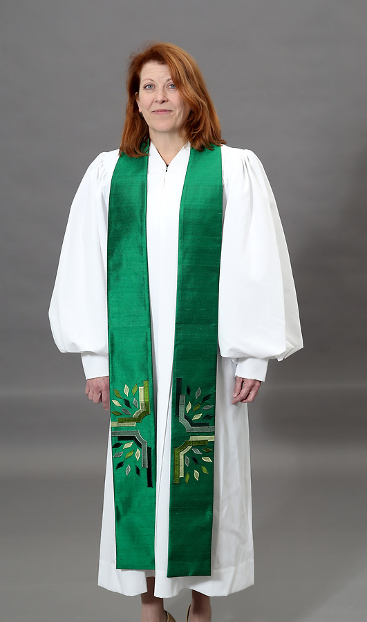 Every Moral Fibers stole fabricated is a unique, hand-made creation crafted from 100% Dupioni silk. Dupioni is a plain weave silk fabric made from yarns that create a highly irregular, slubby surface. The slubs are not defects in the material. Dupioni is known for its elegant luster. Stole is 5" wide and 106" long.