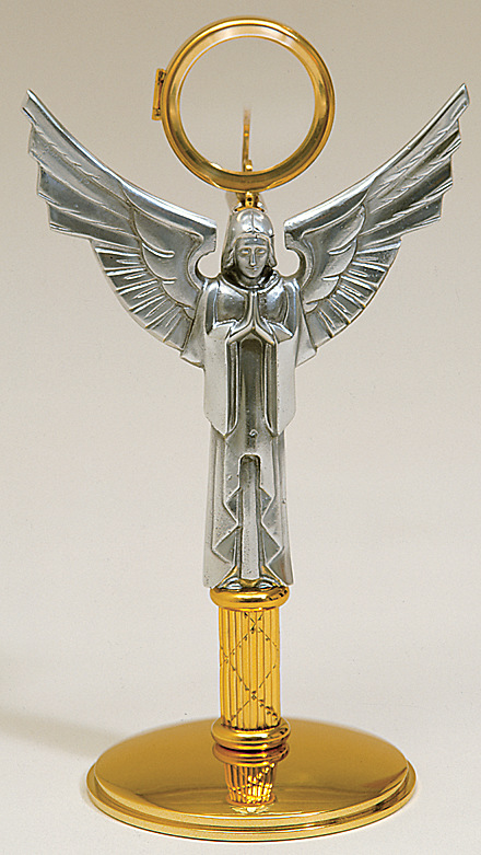 Monstrance -Gold Plated With Angel in Oxidized Silver. Secure Acrylic Glass Luna. 2 3/4". 13" H. 5 1/2" "Base.