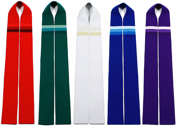 New for 2018! The Triune Stripe stole features three stripes on each panel in various shades of the same color. This reflects the three in one doctrine of the Trinity. Made in the USA of Liberty fabric the panels are wide with tapering around the neck for comfort and better appearance.