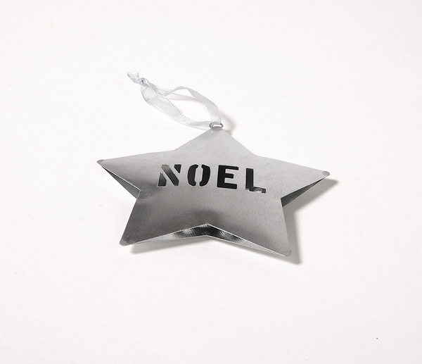 This is Metal star shape ornament with NOEL stenciled in the center of it. Measures 4"H.